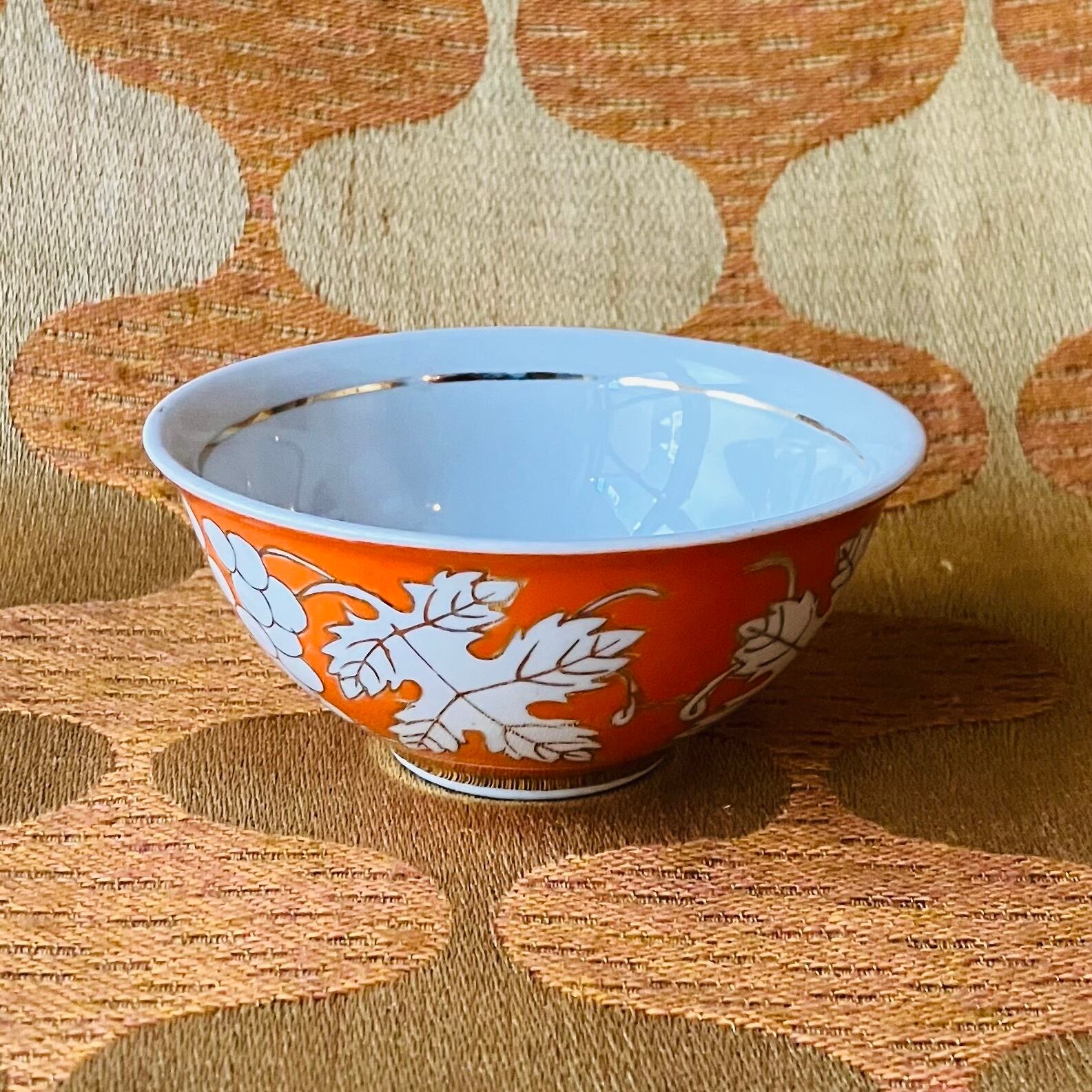 旧ソ連時代 サマルカンドで製造されたチャイカップ。ウズベキスタンでもよく育つブドウ柄は製造当時とても人気がありました。オレンジとGOLDのラインで上品で華やかな雰囲気。